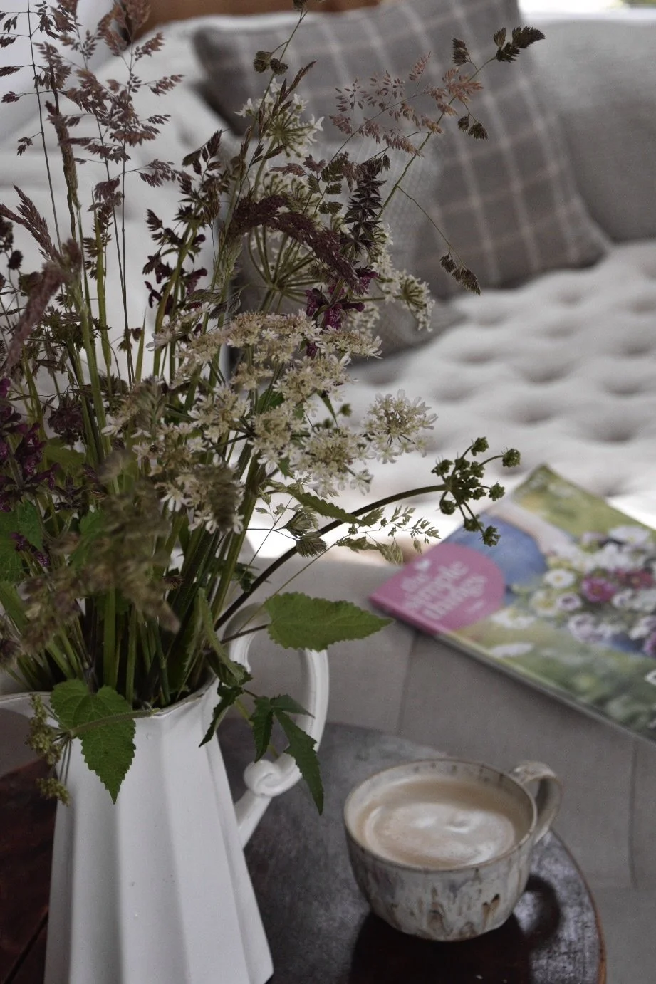 The whole of June was cold I remember that much, with lots of rain. Most of my allotment was getting mullered by rabbits and slugs. The rain however kept the grass in that beautiful purple hue that fades so quickly in a hot summer. The hogweed and roses have been beautiful too, white butterflies, speckled woods and red admirals have all made some brief appearances in the wood on the rare sunny days. I picked some grass to pop in a vase at home. I thought it looked quite pretty but the pollen falling off it was an allergy sufferers worst nightmare. Also picked some elderflower but didn’t have any lemons so I just froze the heads for elderflower tea.